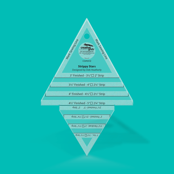 The Strippy Stars Tool designed by Deb Heatherly for Creative Grids® makes perfect floating star point units from squares and strips in eight different sizes.