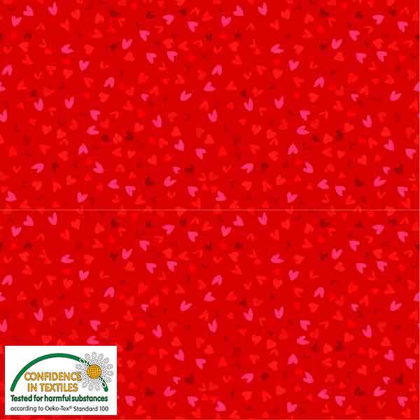 Hearts in pink and red.