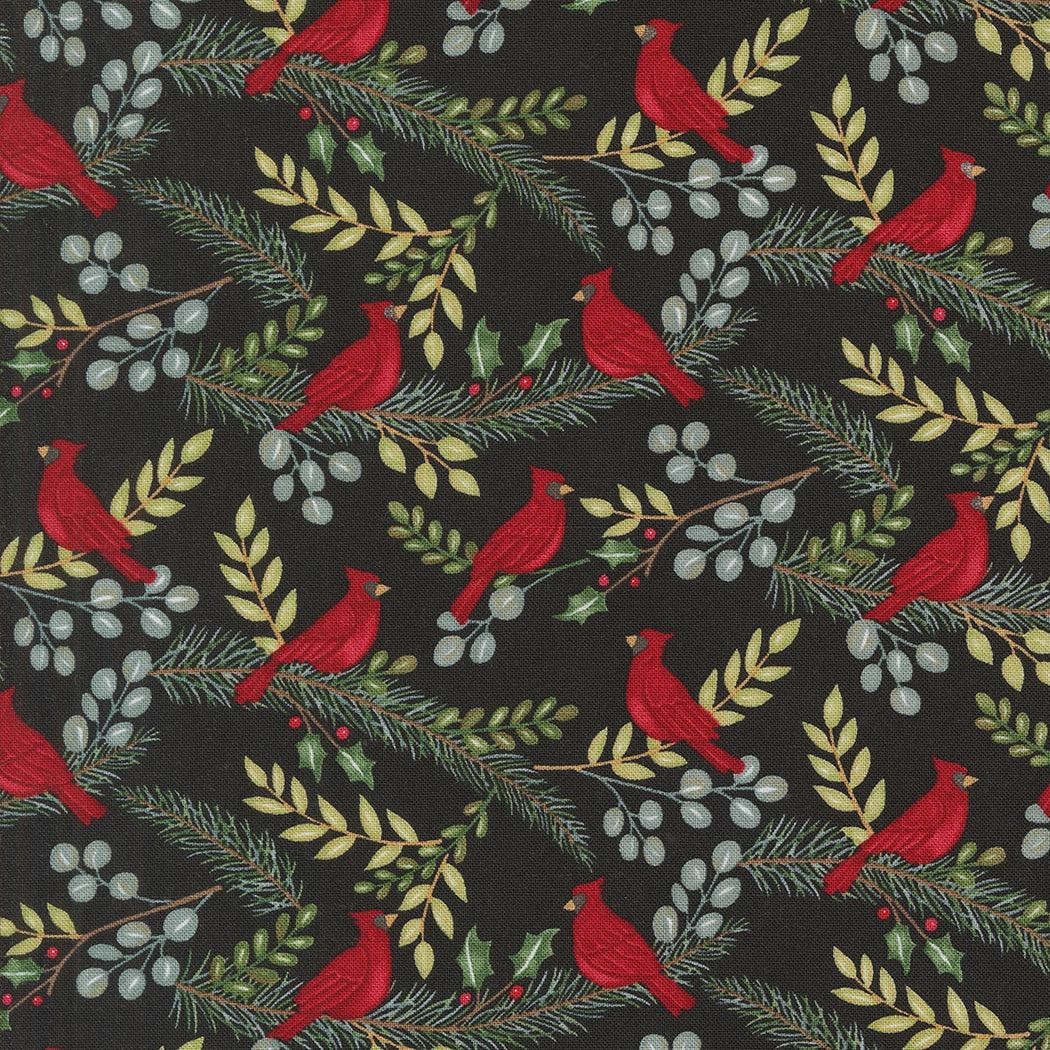 Festive cardinals on black.